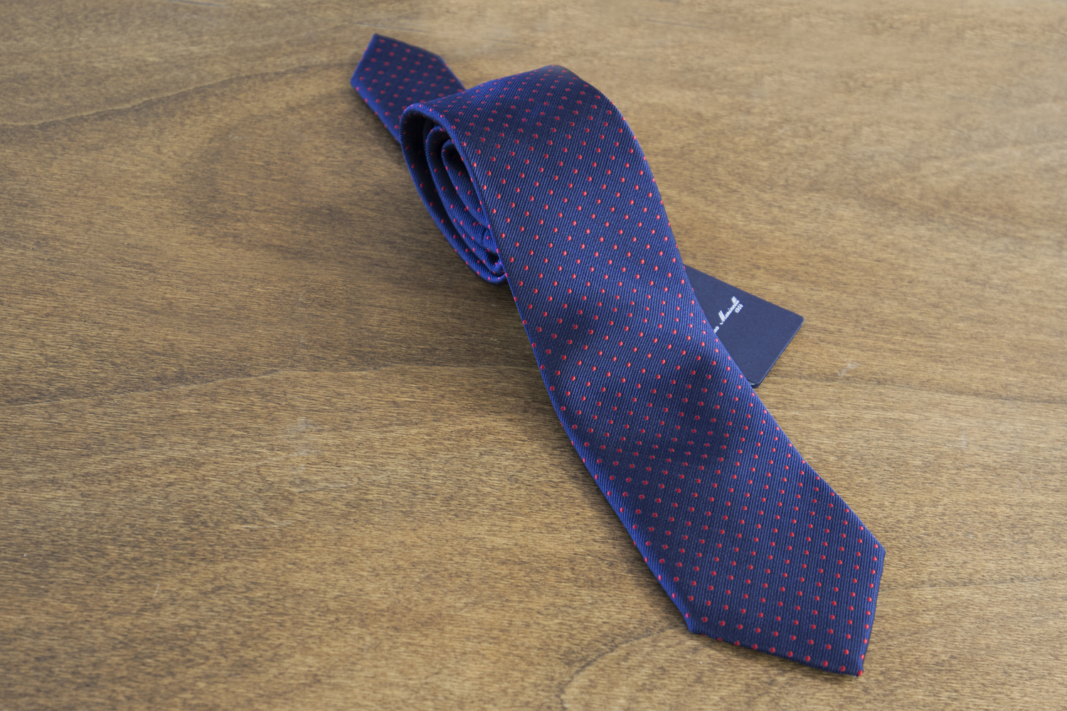 In questo tipo di cravatta, su un colore di base, sono applicati vari puntini.