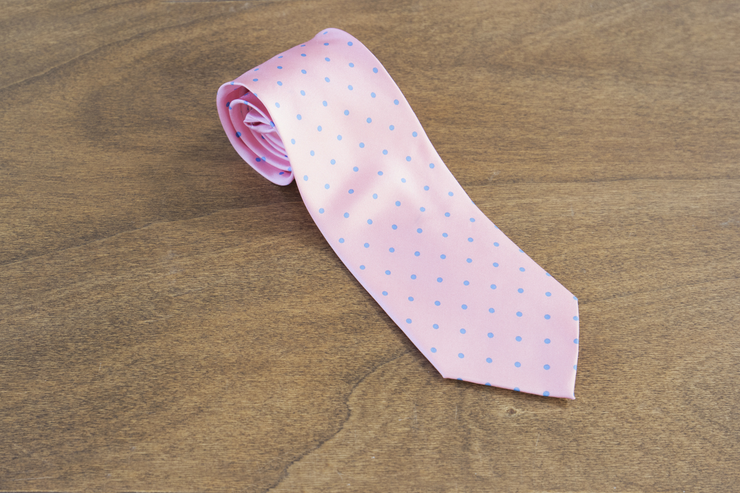 In questo tipo di cravatta, su un colore di base, sono applicati vari puntini.